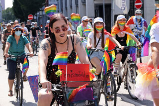Radelnde CSD-Teilnehmer 2021 in Mannheim.
