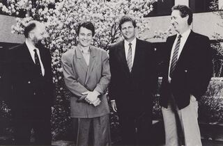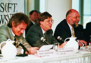 Microsoft-Gründer Bill Gates (Mitte) mit den SAP-Managern Henning Kagermann und Klaus Tschira 1994.
