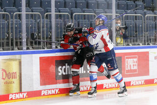 Die Adler teilten in den ersten zwei Dritteln ordentlich aus - hier Matthias Plachta gegen den Kölner Marcel Müller.
