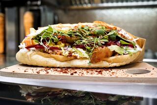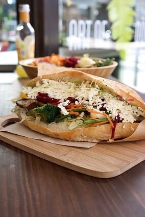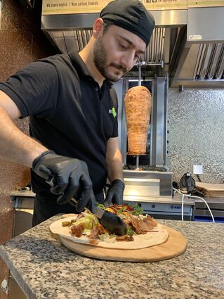 Bei Art of Döner wird der Döner nicht im allseits bekannten dreieckigen Fladenbrot serviert, sondern in einem länglichen Brot.