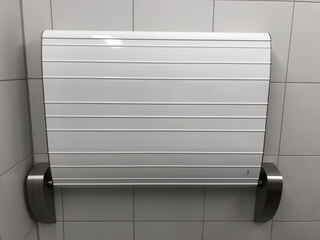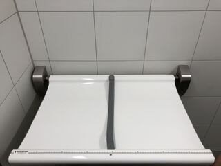 An der Wand hängt ein Wickeltisch...