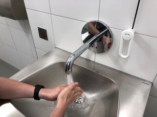 Das Wasser am Waschbecken lässt sich per Handbewegung einschalten.