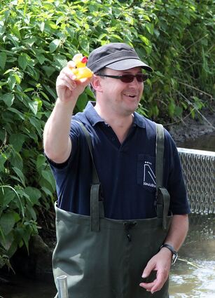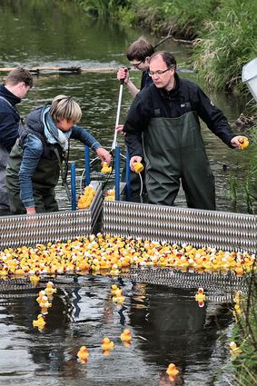 2012 war Bürgermeister Gunther Hoffmann beim Entenrennen im Einsatz. Bild: Brandenburger