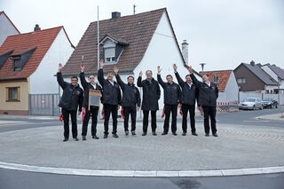 Oktober 2015, Bürgermeister Hoffmann und die Altlußheimer Kerweborscht bei der Einweihung des Kreisels in der Altlußheimer Straße. Bild: Lenhardt