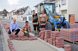 Bei der Sanierung der Waghäuseler Straße legt Bürgermeister Hoffmann Juni 2016 selbst Hand an. Bild: Lenhardt