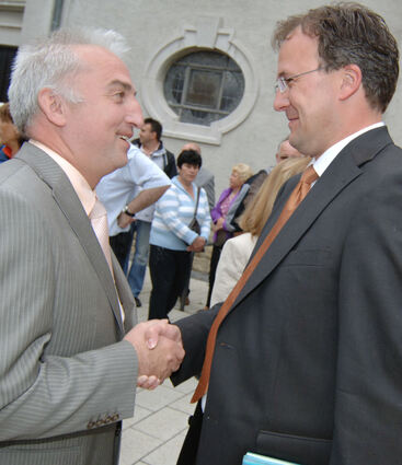 Bürgermeister Hoffmann und seine Frau begrüßen Hockenheims Oberbürgermeister Dieter Gummer.