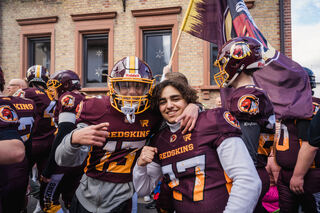 Der CCRW Lampertheim zieht in Rot und Weiß durch die Straßen der Nachbarstadt.