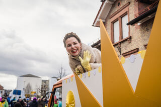 Sonnenbotschafterin Luisa-Marie I. grüßt vom Wagen.
