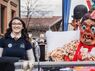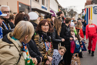 Bürgermeisterin Bärbel Schader schaut sich im Tigerkostüm den Umzug an.