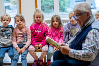 Auch Helmut Glanzner war bei der Vorlesestunde dabei. Er hat in der Kita kleine Insel das Bilderbuch vorgestellt.