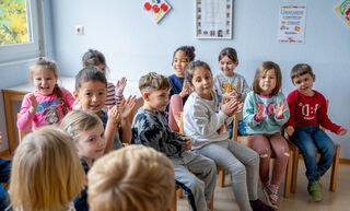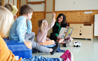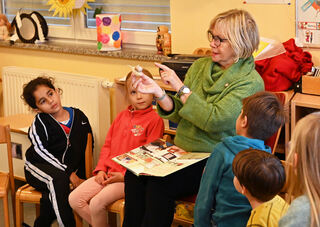 Birgit Siefert war in der Kita Kappesgärten zum Vorlesen. Lange dauerte es nicht, bis die Kinder von den Stühlen aufsprangen und sich die Bilder zur Geschichte genauer anschauen wollten.