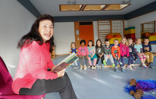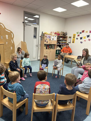 Martine Estran-Krauss war bei der Kita Stubenwald zu Gast und hat den Kindern vorgelesen.