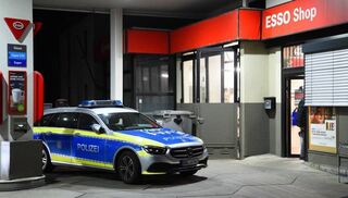 Ein Streifenwagen steht vor der Tankstelle in Plankstadt, die an einem Donnerstag im März gegen 20.20 Uhr überfallen wurde.