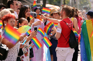 Alle tragen sie mit stolz: Die Flagge der LGBTQ-Community.