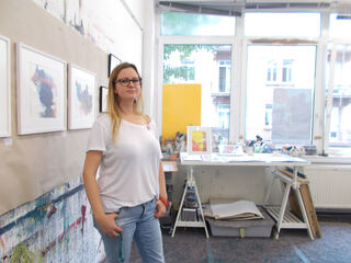Die Künstlerin Kathleen Knauer stellt in ihrem Atelier ihre neue Serie „Agua“ vor.