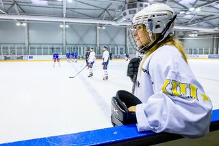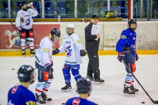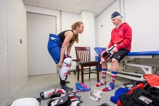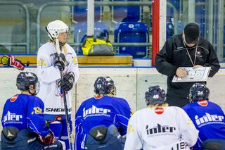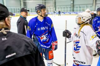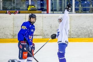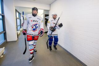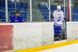Nach dem Training auf dem Weg zurück in die Kabine mit Valentino Kros.