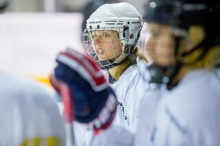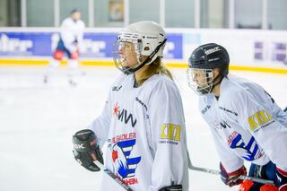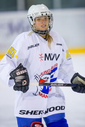 Reporterin Janina Hardung jubelt zwischen den Nachwuchsspielern.