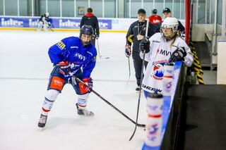 Mit Trainer Frank Fischöder sucht sich Janina Hardung einen passenden Schleger.
