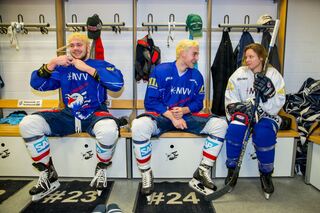 Mit Leon Kremer und Luca Gläser in der Umkleidekabine - jetzt geht es in die Schule.