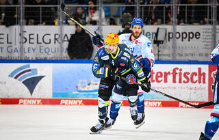 Mannheims Korbinian Holzer (Nr.4) gegen Bremerhavens Niklas Andersen (Nr.71)