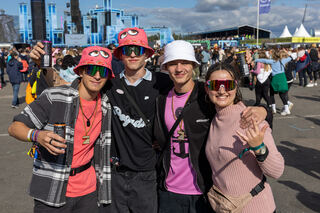 Lukas, Marius, Alice, Lisa, Julia und Klara vor der Euphoria Stage.