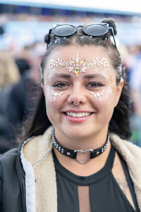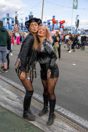 Laura und Julia haben sich ins ihr bestes Festivaloutfit geworfen, beide sind aus Bielefeld angereist.