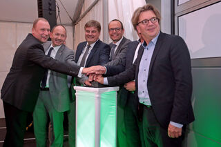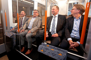Von links: Die Kämmerer Christian Specht (Mannheim) und Hans-Jürgen Heiß (HD) sowie Tomas Jan Podivinsky (Botschafter Tschechien), Gerd Hickmann (Verkehrsministerium BaWü).