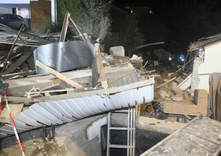 Vermutlich durch eine Gasexplosion wurde eine Garage in Zwingenberg komplett zerstört.