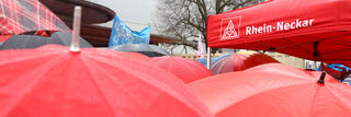 Die Angestellten protestierten vor dem Werkstor 6 in Mannheim-Käfertal.