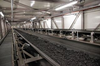 Über diese 350 Meter lange Brücke wandert die Kohle in die beiden Tagesbunker von Block 9. Sie fassen jeweils rund 800 Tonnen Brennstoff.