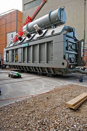 Mit 290 bar Druck und einer Temperatur von 600 Grad wird der Dampf anschließend auf Turbinen geleitet und treibt diese an. Die Bewegungsenergie wandelt der Generator in elektrische Energie um. Der 454 Tonnen schwere Generator läuft mit 3000 Umdrehungen pro Minute. Damit Turbinen und Generator einen festen Stand haben, sind im Maschinenhaus rund 2000 Kubikmeter Beton verbaut.