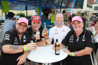 sho_oe_Fanmeile3.jpg Hockenheim Fanmeile, vl Mark, Chris, Paul und Sam aus England 28.07.2019 © M.Oechsler