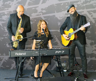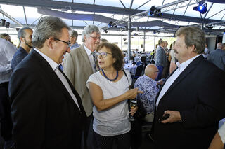 Eve Scheer mit Dieter Braun und Jörg Bensemann.