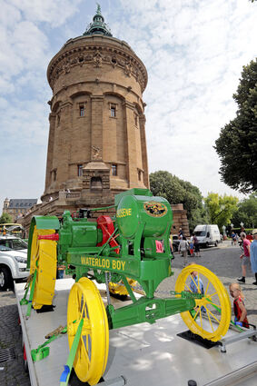 Zahlreiche grüne Traktoren von John Deere fuhren um den Wasserturm.