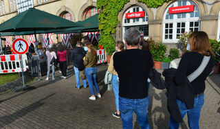 Die Besucher warten auf den Einlass beim ersten Mannheimer Konzert mit Publikum seit dem November-Lockdown spielen.