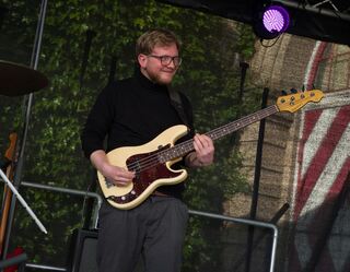 Bassist Tobias Schmid war mit sichtbarer Lust bei der Arbeit.