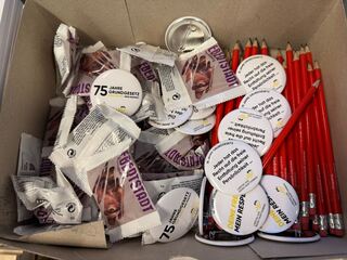 Buttons und Bleistifte als Werbung für die Demokratie.