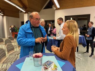 Grünen-Gemeinderätin Sabrina Arns im Gespräch mit Petrus van Nunen.