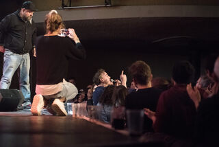 ...etwa dann, wenn er zum Singen von der Bühne steigt und sich unter die Leute mischt.