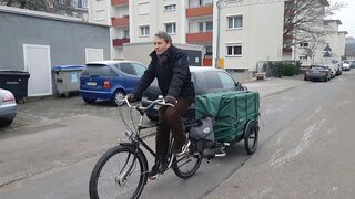 Gründer Robert bei der Auslieferung der Microgreens: Denn auch beim Versand wird ökologisch und nachhaltig gedacht.