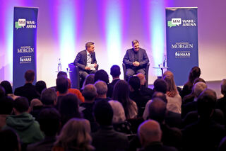 Robert Habeck (rechts) hat sich bei der MM-Wahlarena den Fragen von Chefredakteur Karsten Kammholz gestellt.