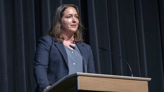Karin Schroff, die erfahrene Polizeihauptkommissarin, möchte ebenfalls Bürgermeisterin in Neulußheim werden und stellt sich als zweite dem Publikum vor.