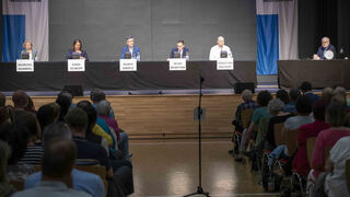 Die fünf Bewerber stellen sich im Plenum den Fragen der interessierten Gäste.