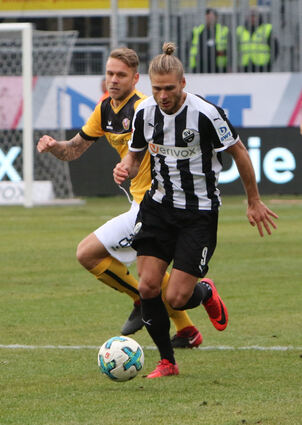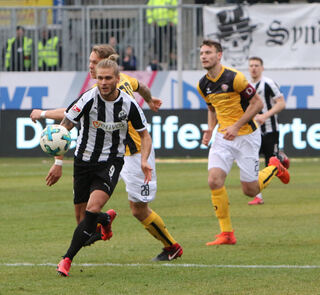 Spielszene mit Rúrik Gíslason in der Liga-Partie gegen Dynamo Dresden im April dieses Jahres im BWT-Stadion am Hardtwald.