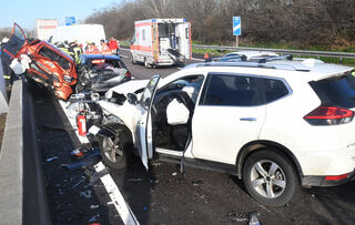 Das Fahrzeug der beiden Frauen wurde durch den Aufprall nach vorne geschoben und zwischen einer Betonwand und einem weiteren Fahrzeug - dem der beiden leichtverletzten Männer - eingeklemmt.