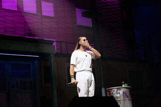 Die meisten Songs bestritt er ganz allein - nur unterstützt von einem DJ und der bildgewaltigen Bühnenkulisse. Sie bildet den Plattenbau auf, in dem der 24-Jährige in Ludwigshafen Gartenstadt aufgewachsen ist.