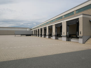 Trotz der vollen Auslastung des ehemaligen Logistikzentrums von Aldi Süd gibt es unter John Deere nur noch wenig Lkw-Verkehr - im Gegensatz zum Discounterriesen ist der tägliche Warenumschlag auf Grund der großen Bauteile deutlich geringer.