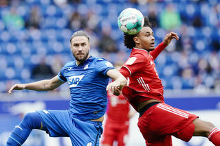 Mit Haken und Ösen beim Kopfballduell: Ermin Bicakcic und Münchens Joshua Zirkzee.