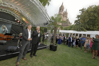 Intendant Nico Hofmann (links) und OB Michel Kissel begrüßen die Gäste...