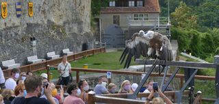 Die Burg Guttenberg gilt als eine der letzten unzerstörten Staufer-Burgen in Deutschland und ihrer Faszination kann sich bis heute kaum einer entziehen. Wenn ein Uhu, ein Geier oder ein Seeadler nur ein paar Zentimeter über den Köpfen der Besucher segelt, dann ist die Ehrfurcht vor diesen majestätischen Tieren mit Händen zu greifen. Die Deutsche Greifenvogelwarte auf der im 12. Jahrhundert geründeten Burg Guttenberg fasziniert Groß und Klein bis heute. Die Flugvorführung findet täglich um 11 und 15 Uhr statt. Ein toller Ausflugsort mit viel zum Entdecken und Lernen, gerade mit Kindern. Fragen wie: 'Warum wurden Burgen gebaut'; 'wie wurde man ein Ritter' oder 'wie sah das Leben damals aus' beantwortet das Burgmuseum.